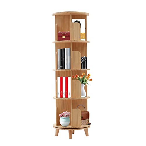 OMGGYER Vridbar bokhylla i 5 nivåer fristående roterande hylla 360° roterande bokhylla, multifunktionell bokhylla, massivt trä, golvstående förvaringshylla för barn och vuxna, 45 x 160 cm