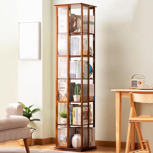 Roterande Bokhylla Hörnbokhylla, 360 Display Bambu Spinnande Bokhylla, Golvstående Bokhylla Smal Hylla Roterande Arrangör Förvaringsställ För Litet Utrymme I Sovrummet Studierum