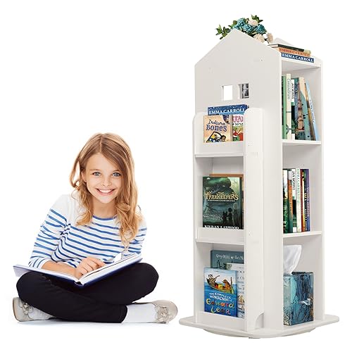 DFENG 3-nivåer vridbar bokhylla barnbokhylla, 360° roterande hylla stående hylla bokhylla barnhylla vit roterande böcker hylla för barnrum, vardagsrum, sovrum