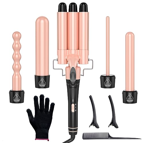 OBVHNUA 5 i 1 hårlocktång 9-32 mm keramisk locktång 2 temperaturnivåer 150–230 ℃ locktång 2 m 360° roterande kabel med anti-skållande handske, 2 hårklämmor, 1 kam