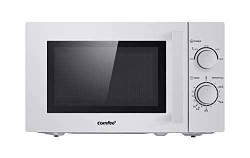 Comfee CMSN 20 si mikrovågsugn, solo-mikrovågsugn med 5 lägen, inomhusbelysning, easy derost, 360° roterande platta, två vridknappar, 20 l/700 W, silver