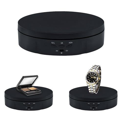 Mcbazel 360 graders roterande stativ för fotografering, elektriskt roterande platta, motoriserat roterande stativ i svart, visningsbord för presentation av smycken, klockor, digitala produkter (svart)