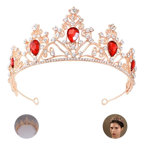 MEZHEN kristallkrona tiara krona damer strass krona flicka brud hårsmycken diadem bröllop huvudbonad för födelsedag bankett party gåva brudsmycken röd, Legeringar