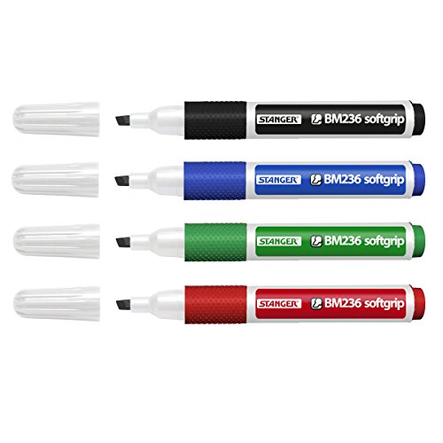 Stanger 714014 Silverline Board Marker BM 236 softgrip set mejsel, svart/blå/röd/grus