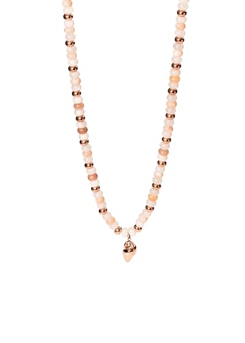 Purelei® Seafoamkedja – ädelt pärlhalsband med snäckhänge av rostfritt stål i guld, silver eller roséguld – 40–45 cm – kvartsijade och rostfritt stål – sommardesign, Länge: 40 - 45 cm, Rostfritt stål