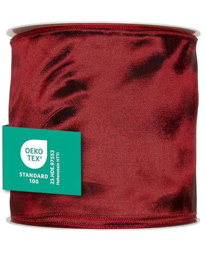 Halbach sidenband premium presentband med trådkant | bredd 100 mm längd 25 m | Öko-Tex 100 certifierat band | Taftband Made in Germany, färg: mörkröd
