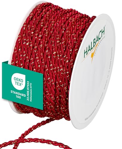Halbach sidenband premiumsnöre (vinröd) | bredd 6 mm längd 10 m | Tillverkad i Tyskland & Öko-Tex certifierad | glänsande satinsnöre av acetat