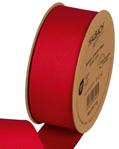 Halbach sidenband premium ripsband | bredd: 38 mm längd: 25 m | hållbart presentband av återvunnen polyester | Perfekt som band | färg: röd