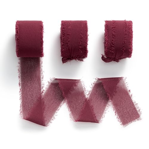 MORSUNBELA Rött chiffongband, röd chiffongband, sidenband, dekorativt band, bröllopsband, mörkröd, 3 rullar 2,5 cm x 6,4 m vardera