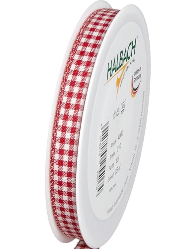 Halbach sidenband premium Vichy Karo presentband (röd) | Bredd 10 mm längd 25 m | rutband tillverkat i Tyskland | rutat band i många färger