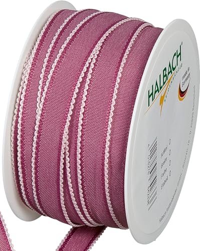 Halbach Sidenband dekorativt band bomullsoptik med bågkant, bredd: 15 mm längd: 25 m, band för att dekorera och dekorera presenter och festliga tillfällen, gör-det-själv dekorband, färg: bär/blekrosa
