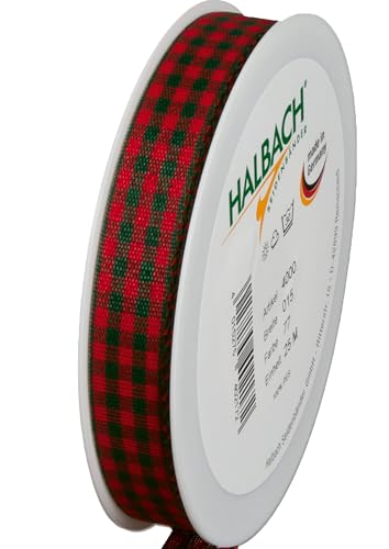 Halbach Sidenband Vichy presentband, rutigt band för inslagning av gåvor, rutband för festliga tillfällen, bredd: 15 mm, röd/mörkgrön