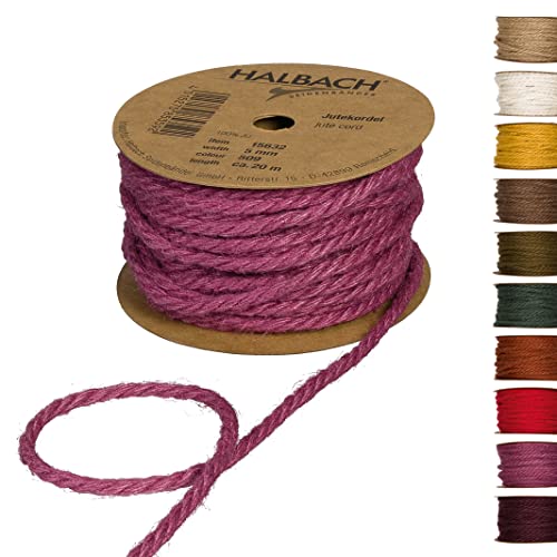 Halbach Sidenband Premium jutesnöre | Bredd: 5 mm Längd: 20 m | Juterep för dekorationer, jutesnöre av 100% naturlig jute för trädgård och presentförpackning, färg: bär