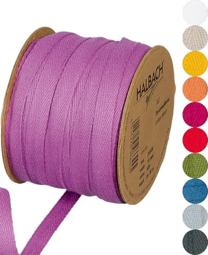 Halbach Sidenband bomullsband | 10 mm x 30 m | vävband 100% bomull | Band för pyssel som metervara | tygband för dekorationer, gör-det-själv-hantverk, snedband sömnadsarbeten, färg: bär