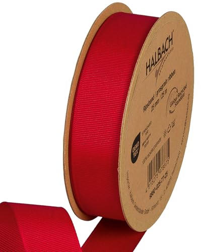 Halbach sidenband premium ripsband | bredd: 25 mm längd: 25 m | hållbart presentband av återvunnen polyester | Perfekt som band | färg: röd