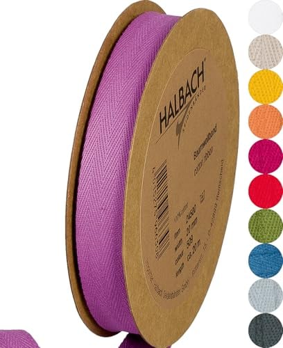Halbach Sidenband bomullsband | 20 mm x 20 m | vävband 100% bomull | Band för pyssel som metervara | tygband för dekorationer, gör-det-själv-hantverk, snedband sömnadsarbeten, färg: bär