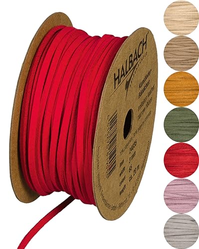 Halbach sidenband premiumsnöre (röd) | bredd 2 mm längd 50 m | Tillverkad i Tyskland & Öko-Tex certifierad | glänsande satinsnöre av acetat