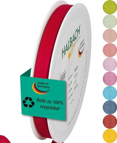 Halbach sidenband presentband | Bredd 10 mm längd 25 m | Band tillverkat i Tyskland | presentband i en mängd olika färger och bredder, perfekt för förpackning och dekoration, färg: röd