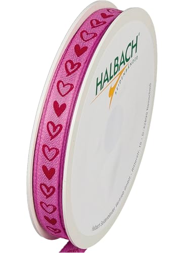 Halbach sidenband presentband "hjärtan" | bredd 10 mm längd 20 m | tryckband med hjärtmotiv | perfekt band för bröllop eller alla hjärtans dag | färg: rosenrosa/röd