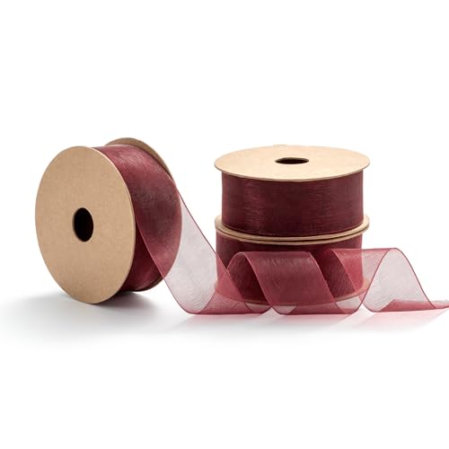 MORSUNBELA Presentband rött, organzabband, 25 mm x 9 m, band brett dekorband, sidenband, vinröd