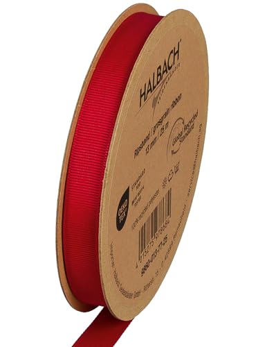 Halbach sidenband premium ripsband | bredd: 13 mm längd: 25 m | hållbart presentband av återvunnen polyester | Perfekt som band | färg: röd