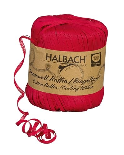 Halbach Sidenband bomullsband 10 mm x 30 m, band för pyssel som metervara, tygband för dekorationer, vävband 100% bomull gör-det-själv hantverk, snedband sömnadsarbeten, färg: röd, 24500