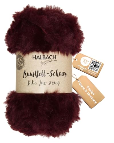 Halbach sidenband teddy tyg dekorband | bredd: 20 mm längd: 10 m | konstpäls-band för pyssel och sömnad | Färg: vinröd
