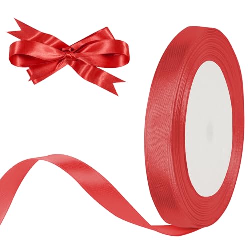 HOTUT 22 m satinband, 10 mm rött satinband, dekoration sidenband, julband, presentband, bilband för jul, bröllop, fest, presentinslagning och hantverk, heminredning