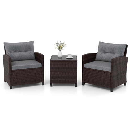 GIANTEX 3 delar rotting utomhus trädgårdsmöbler set med Barquülo kuddar och glaspaneler, bestående av ett bord och 2 fåtöljer (beige)
