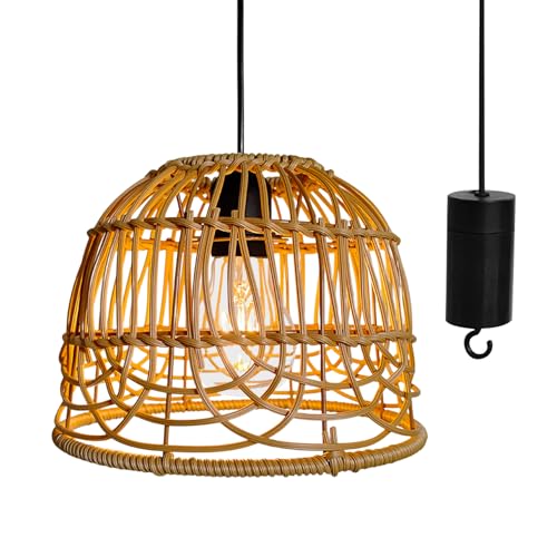 Hänglampa rotting, E27 utomhusbelysning, hängande lampa med batteri, bärbar boho rotting lampskärm, hängande lampa utomhus för uteplats bar trädgård terrass vardagsrum sovrum