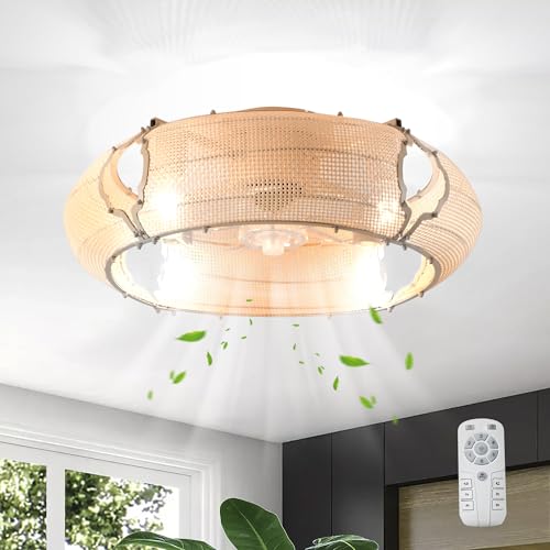 Ganeed Boho Caged takfläkt med lampor och fjärrkontroll Flush Mount lågprofil Rotting takfläktar med lampor 6 hastigheter Farmhouse ljuskrona för sovrum vardagsrum kök 4 lampor