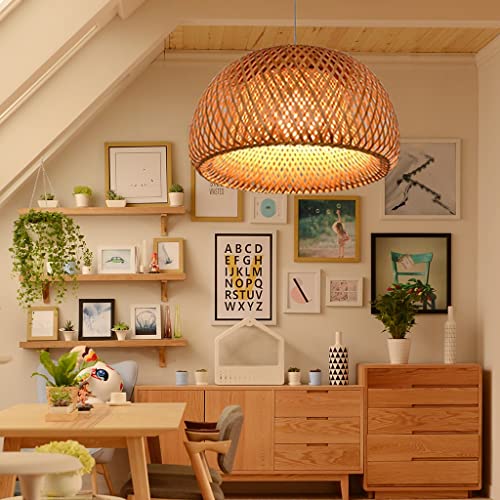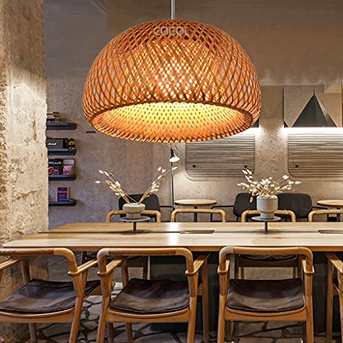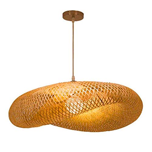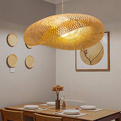 Hängsmycke Ljus Enkelhet Vintage vävning Ljus Naturlig bambu och vävt rotting hängande lampa Justerbar sling E27 Taklampa Kinesisk stil lampskärm runt taklindring,60cm