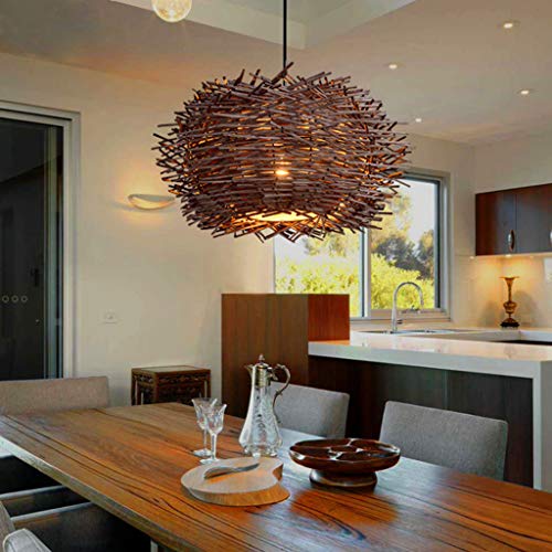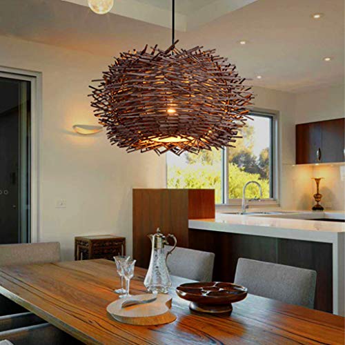 AHQX Rotting pendellampa retro kreativ fågelbo ljuskrona handvävd hängande lampa E27 höjdjusterbar hänglampor restaurang sovrum vardagsrum balkong café bar pendellampor, brun, 50 cm
