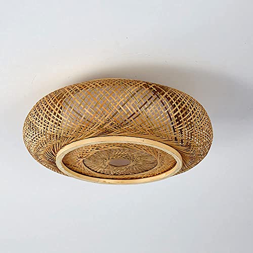 ENXING Taklampa Retro Vardagsrumsdekoration Naturlig Bambu Och Rotting Taklampa E27 Handvävd Takbelysning för Matsals Sovrumslampa Cafe Pendellampa Kök Korridor Taklampor,48CM