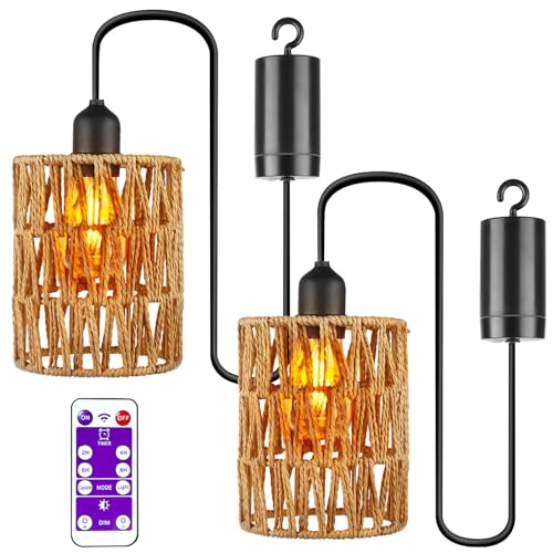 2 stycken hängande lampor med batteri, batteridriven lampa med fjärrkontroll, pendellampa utan strömanslutning, rotting lampa, boholampa för uteplats, trädgård, lusthus, vardagsrum, sovrum