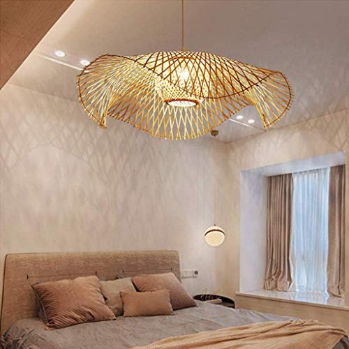 ENXING Taklampa Retro Vardagsrumsdekoration Naturlig Bambu Och Rotting Taklampa E27 Handvävd Takbelysning för Matsals Sovrumslampa Cafe Pendellampa Kök Korridor Taklampor,85CM