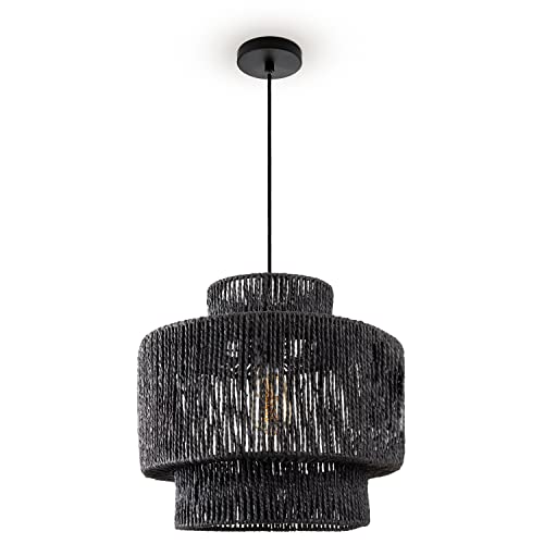 Paco Home Pendelarmatur Matbord Papper Boho Takpendel Matplats Lampa E27 Hängande Armatur Rotting, Färg:Svart (Ø40cm), Typ av lampa___Färg:Pendelbelysning - Svart