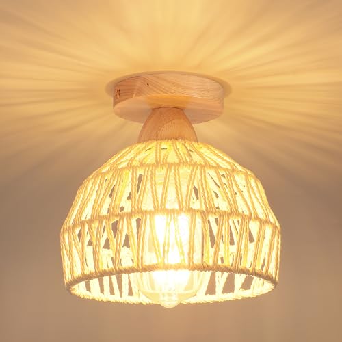 Schindora Bamboo Taklampa, Rotting Halv Infälld Taklampa, Handgjorda Boho Rattan Lampar, Bondgårdslampor för sovrum plantskola Hall Korridor Passway