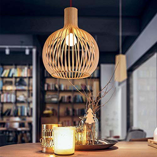 Pendellampa i trä, bambu-lykta i vintagestil, taklampa, retro, rund ljuskrona, handvävd lampskärm i rotting, för restaurang, vardagsrum, sovrum, kontor, dekorativ belysning, hängande lampa, E27, 50 cm