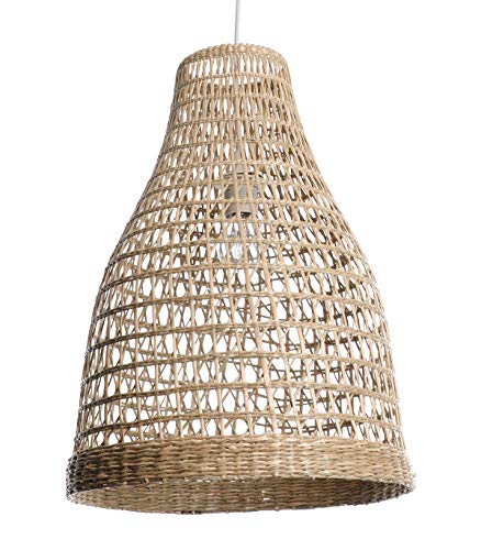 LUSSIOL Bogota pendellampa med bohemisk look, naturlig hygge - hängande lampa av naturlig flätad rotting, vit kabel, uttag E27, Ø 30 cm - LED-lampa möjlighet: