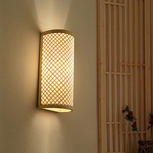 Lfoute Retro Vägglampa Bambu Rotting Vägglampa Retro Inre Korridorljus E27 Lamphållare Taklampa Trä Väggbelysning För Matsal Sovrum Vardagsrum Loft Restaurang 2 Lågor