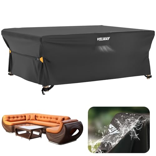 Velway överdrag för trädgårdsmöbler stor: 270 x 180 x 71 cm uppgraderad vattentät vindtät uteplats utomhus bord stolskydd med luftventil anti-UV för rottingmöbler set rektangulär – svart