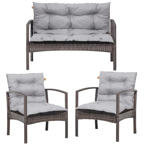Bielik 3-delat set med trädgårdskuddar – sittdyna för trädgårdssoffa och rottingmöbler | Bänkkudde + 2 x stolkuddar | utomhus och inomhus, vattenrepellent, vadderad, (ljusgrå)