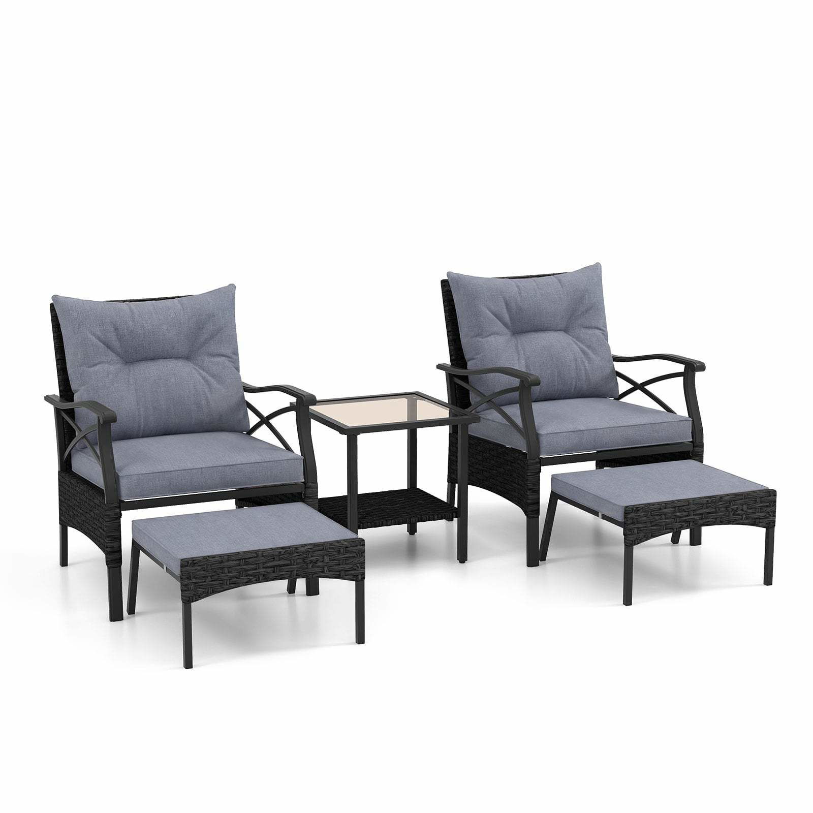 5-delat set med rottingmöbler för utomhusbruk och fotpallar, grå