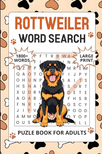 Rottweiler Word Search Puzzle Book for Adults: 1200+ Words, Rottweiler Themed Word Finds Puzzles Activity for Seniors, Perfect Gift for Dog Lovers with Solutions