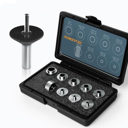 POWERTEC 72092 Solid Router Template Bushing Guides and Centering Pin with Cone, 5/16 to 1 Inch Bushings Fits All Porter Cable Style Router Sub Bases. Perfect for Precision Woodworking