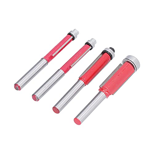 JINGLING Bitsats för justeringsfräsar | Hållbar frässats för släta kanter, 1/4 eller 6 mm skaft, 4 stycken Top Bearing Flush Trim Router bits, fräsning skärdiameter träbearbetningsverktyg