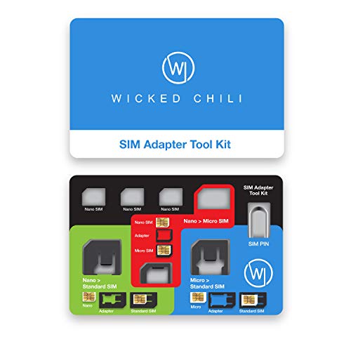 Wicked Chili 8in1 SIM-kortadapter Set Nano till Micro och Standardkort + Sim Card Pin för mobil, surfplatta, smartphone, mobil WLAN-router, LTE Travel Router, Surfstick, telefon (med reseväska)