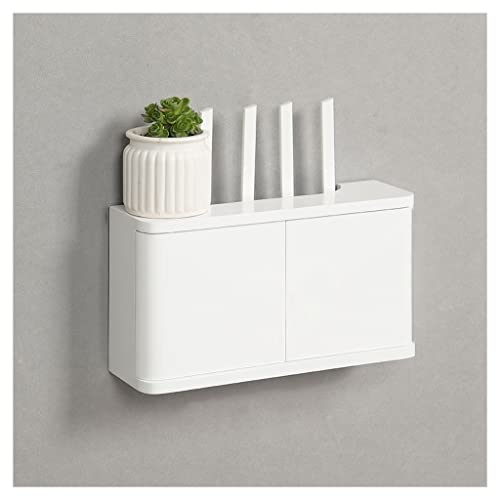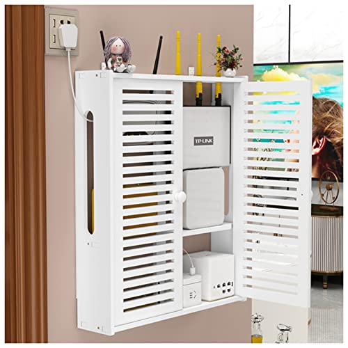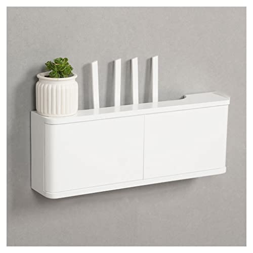 Väggfäste WiFi Router Box Persienner Dekoration Flytande Hyllor Vägghylla Power Strip Protector Hider Router Rack Desktop Förvaringsskåp (Color : White, S : 42x10x51cm)