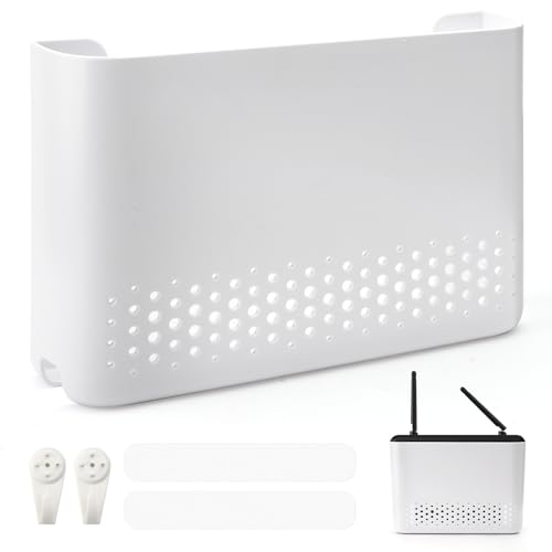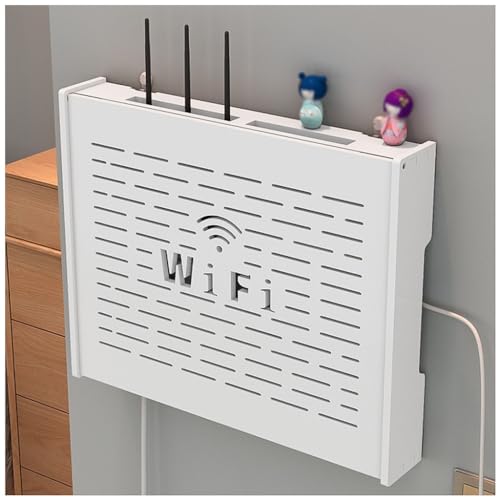 APOMOONS Router skåp router gömma router box router förvaringslåda väggfäste router hylla wifi skåp wifi rack väggdekoration kablar gömma vägg WLAN vägghängare vit 25,6 x 17 x 5,4 cm